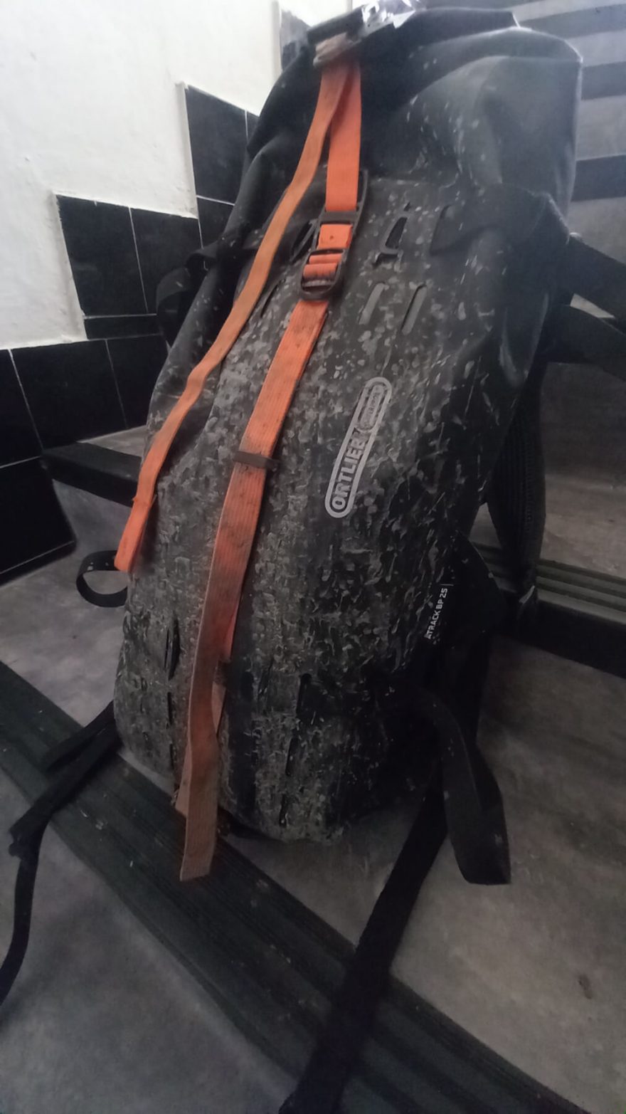 Výhoda vodotěsného batohu Ortlieb Atrack BP 25, pokud je špinavý, prostě ho osprchujte.