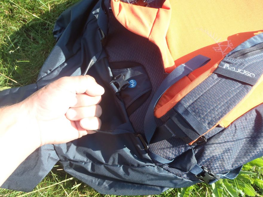 Horní kompresní popruh je rozepínatelný s trojzubcem a dolní pouze zatahovací – Osprey Mutant 38.