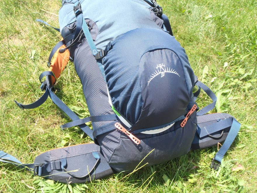 Na čelním panelu je dvojice popruhových žebříčků pro fixaci extra materiálu – Osprey Mutant 38.