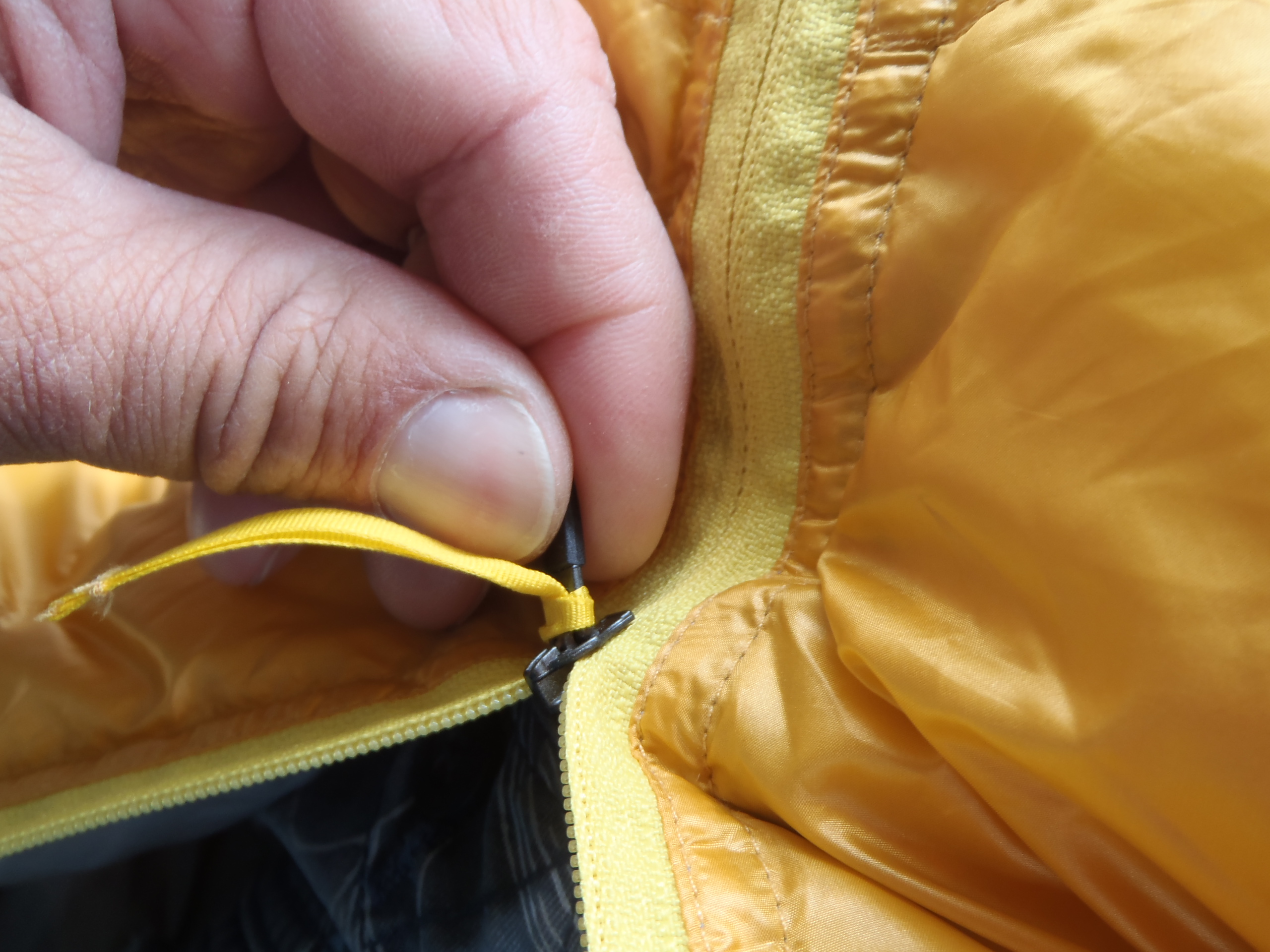 Drobné kovové táhlo zipu na spacáku Patizon 2:500.