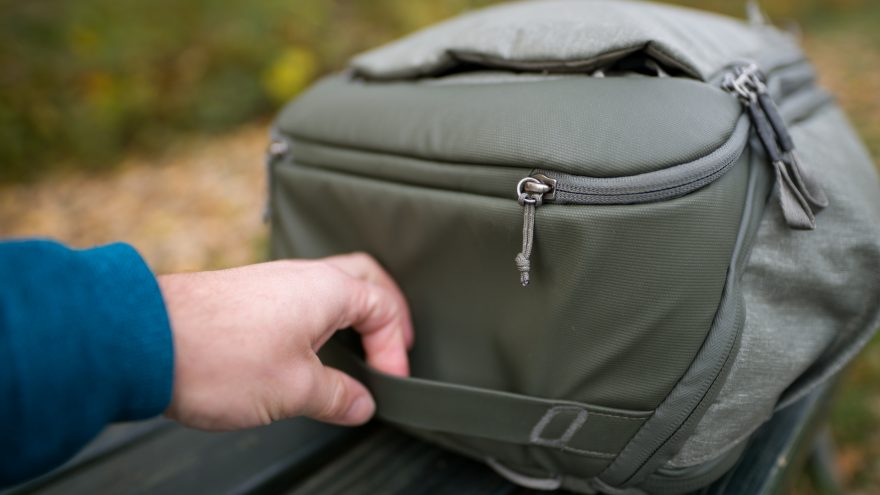 Postranní kapsa je ideální na lahev s pitím. Na ramenní popruhy pak lze připevnit držák Capture