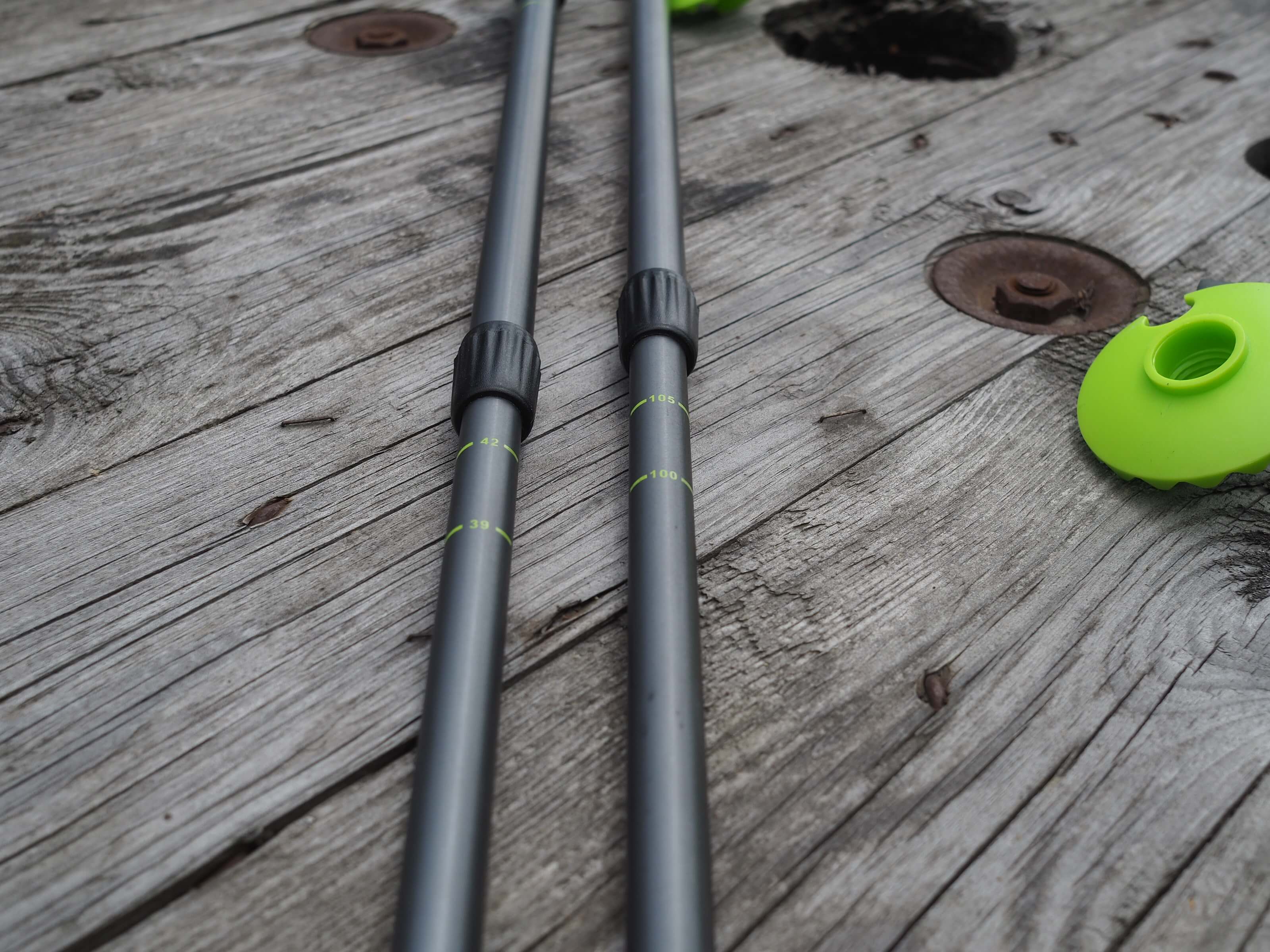 Vroubkovaný kroužek na jednom z dílů a stupnice délky holí.