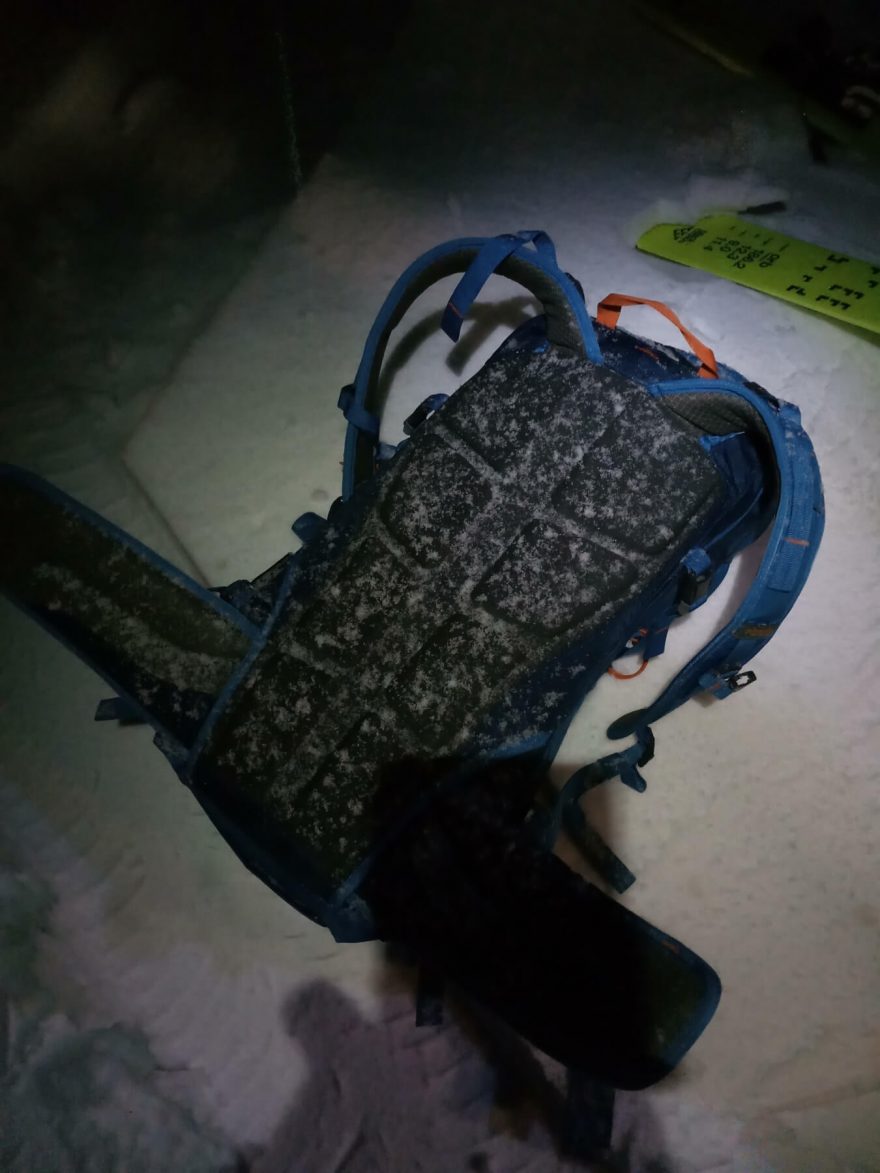 Lavinovou výbavu na svém místě drží dvě elastická poutka