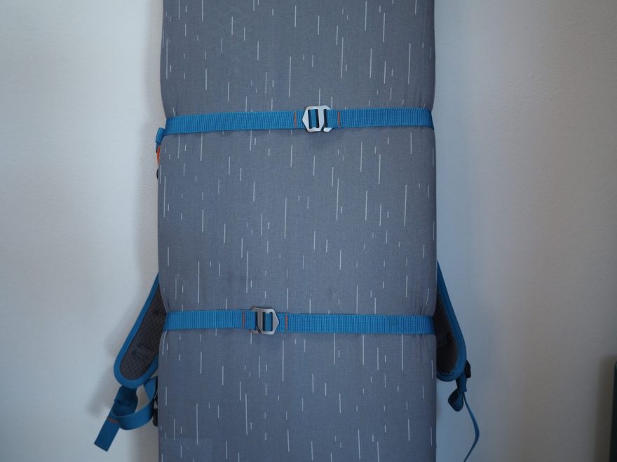 Připnutí lyží na batoh do (H)Áčka je rychlejší než diagonálně, ale občas se stane, že se nakopnete o hranu lyží