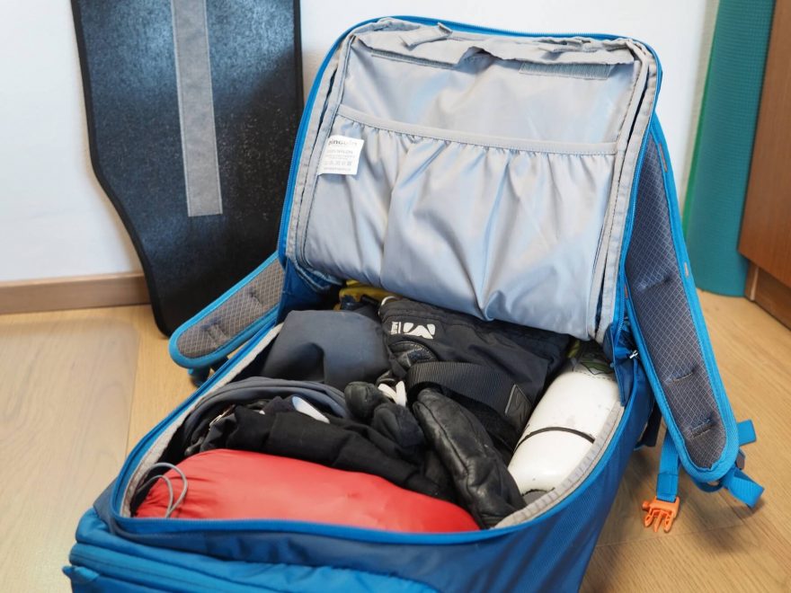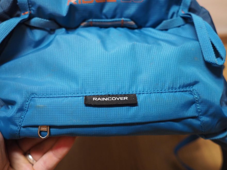 Spodní kompresní popruh má na sobě látkový rukávek. Na obou stranách batohu jsou i menší kapsičky.