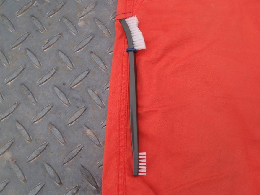 Kartáček v držáku na lezeckých kalhotech RAFIKI Cliffbase.