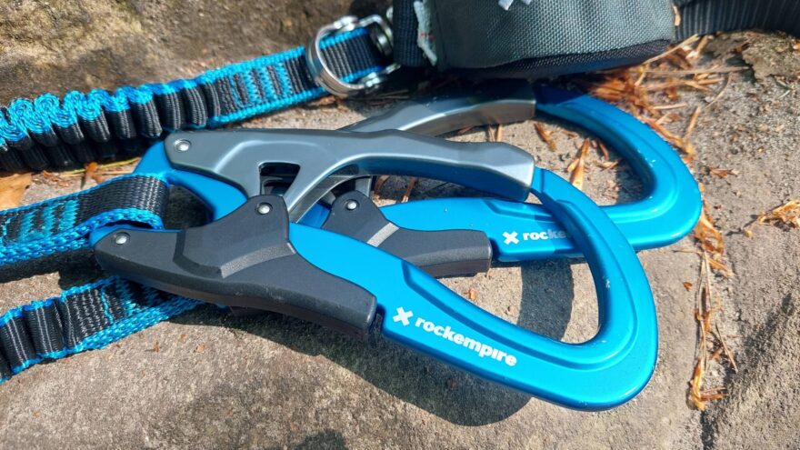 Detail dlaňových karabin na via ferratovém setu ROCK EMPIRE SIGA