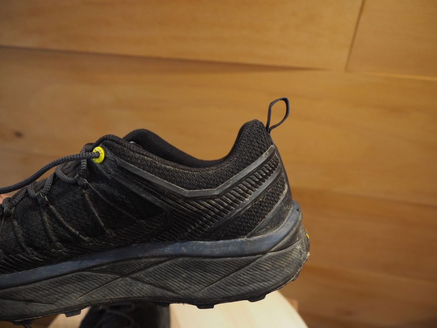 Pohled dovnitř boty Dropline s její hlubokou patou.