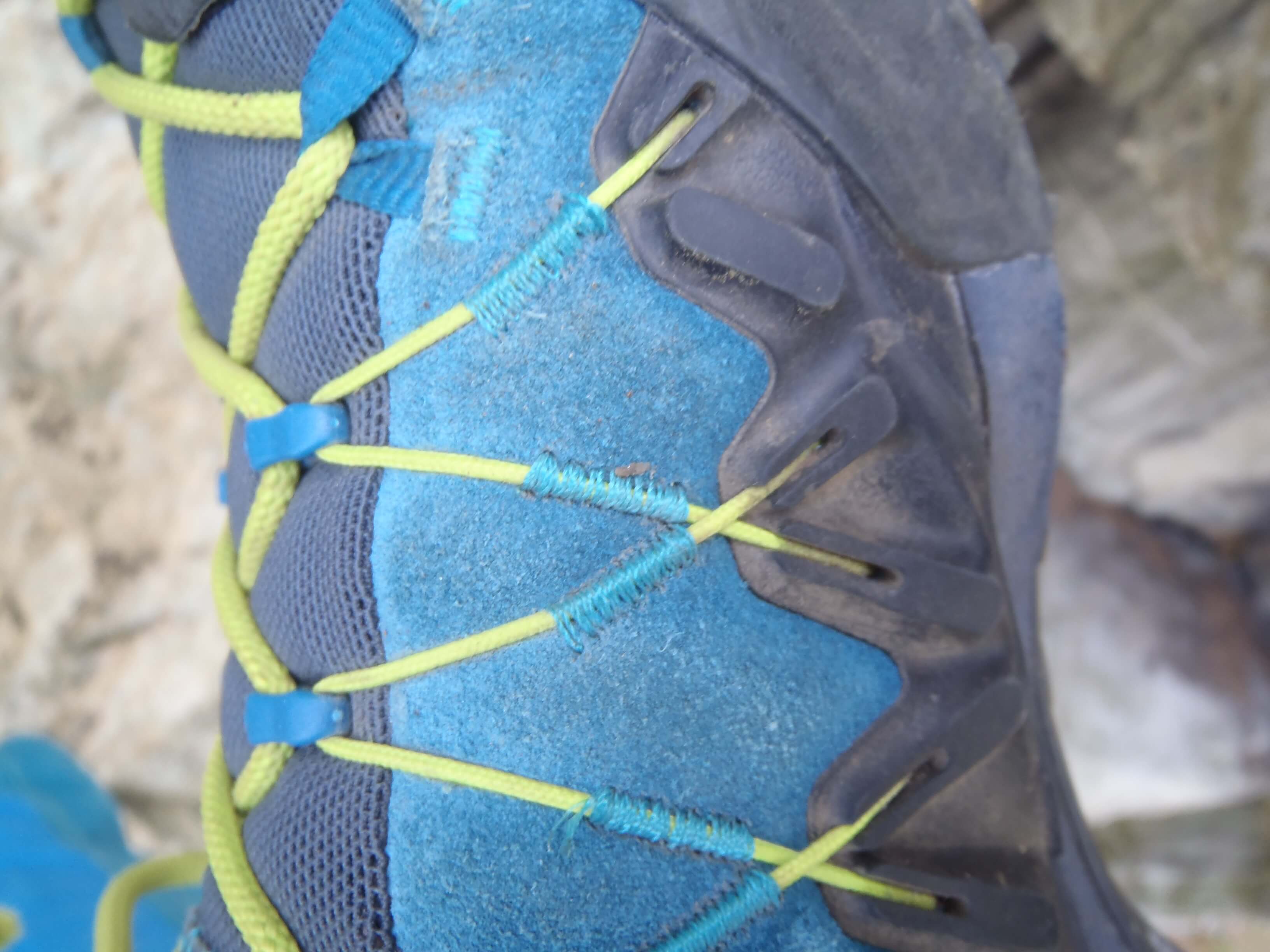 Detail stahování nártové části bot Salewa Wildfire Edge.