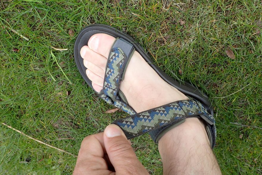 Díky našitému plastovému dílu na konci popruhu se hlavní pásek sandálů TEVA Terra FI 4 dobře ovládá a bere do ruky.