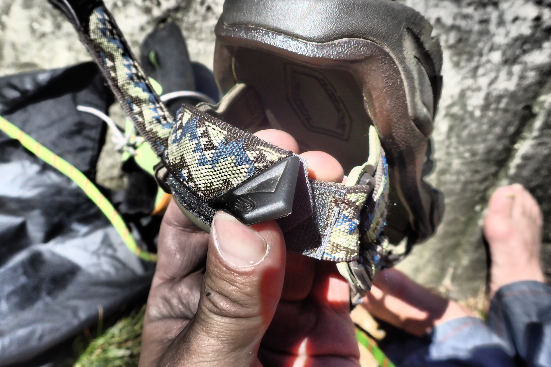 Plastový díl na TEVA Terra FI 4 mírně odstává a popruh se dá takto snadno uchopit.