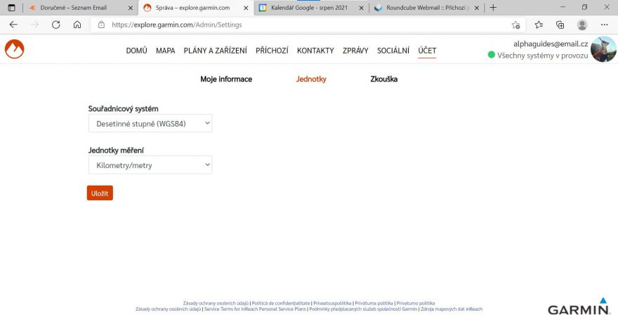 Obrazovka pro psaní zpráv - Garmin inReach Mini