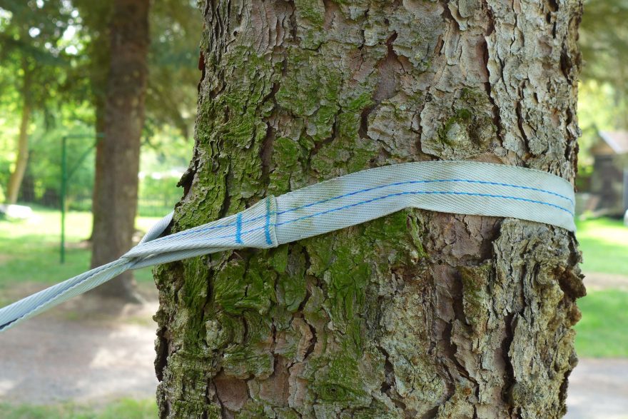 Upevnění okolo širšího stromu.