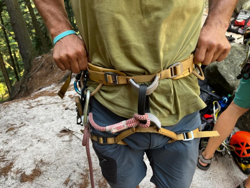 Detail navazovacího bodu na nohavičkách sedáku SIMOND KLIMB