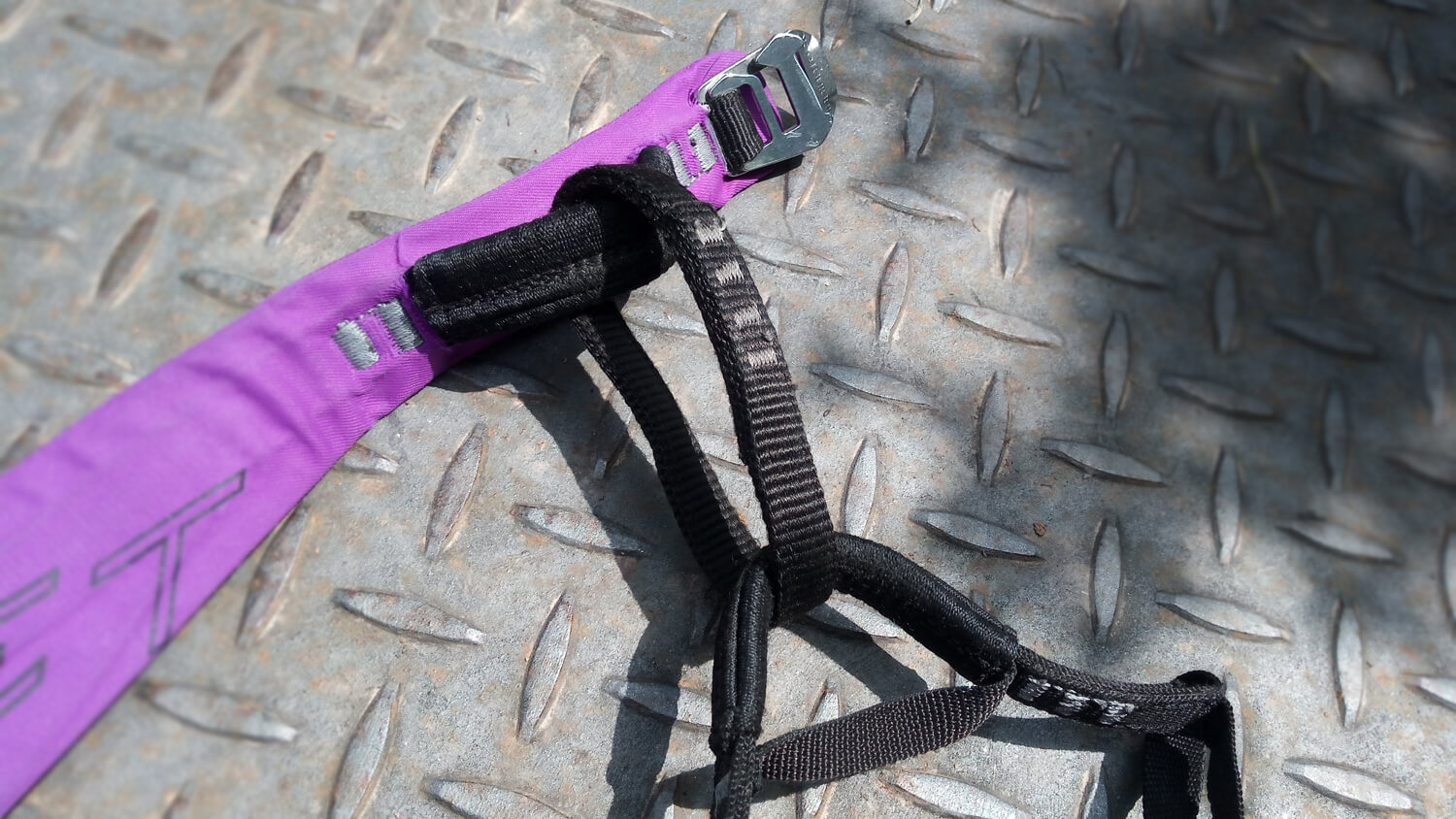 Detail na zesílené navazovací body a jistící oko sedáku Singing Rock ROCKET