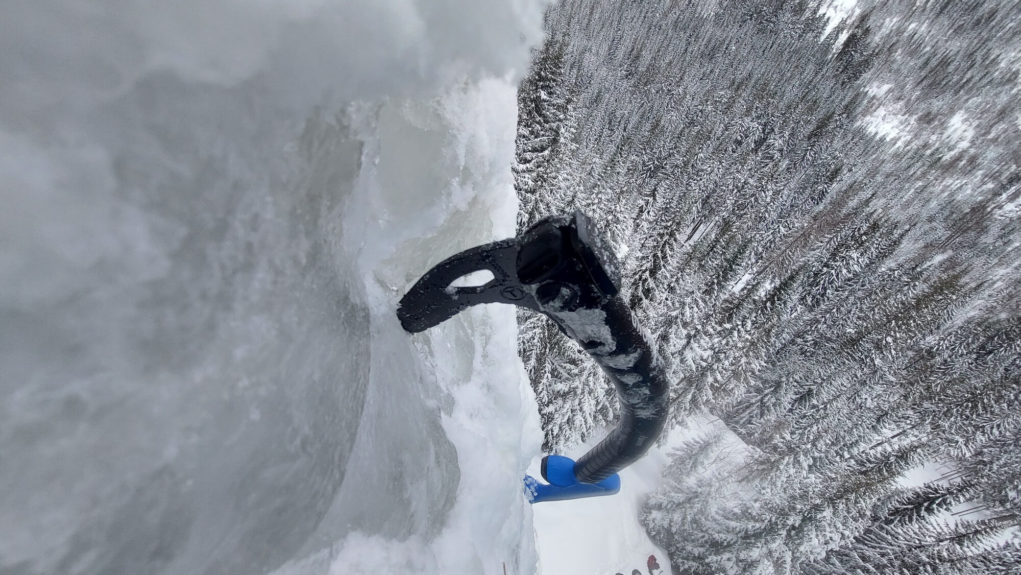 Díky nízké hmotnosti cepín SIMOND MAMBA někdy vyžaduje razantnější švih pro usazení do ledu