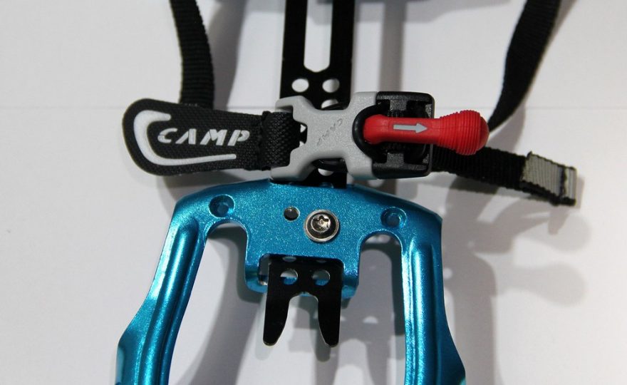 Spodní pohled na fixační matičku s hrubým a jemným nastavením délky maček CAMP: Skimo Total Race