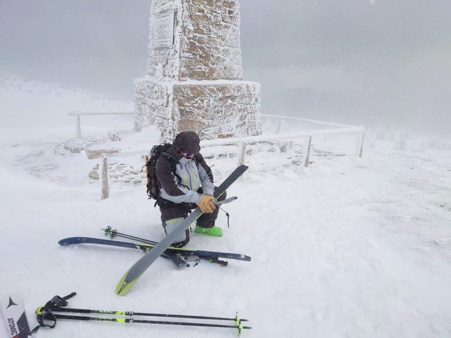 Během testování došlo i na lezení s cepíny a těžší sjezdy - SKIALPOVÉ LYŽE MT 85 S VÁZÁNÍM WEDZE