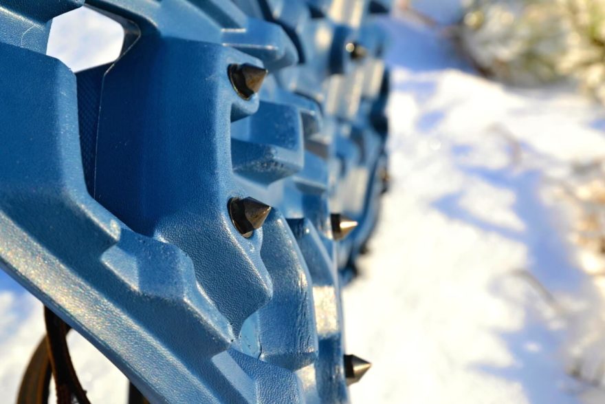 Spodní díl sněžnic Decathlon SH100 Easy má hrubší vzorek a tři páry hrotů