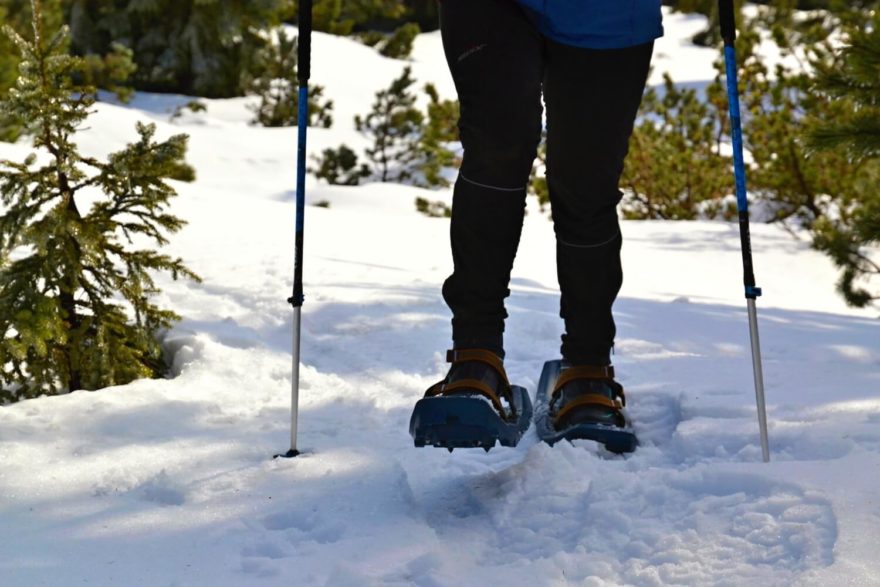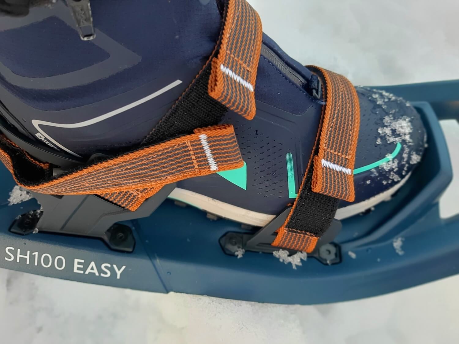 Možné uchycení přečuhujícího zadního popruhu (pro lidi s menší nohou). Sněžnice Decathlon SH100 Easy