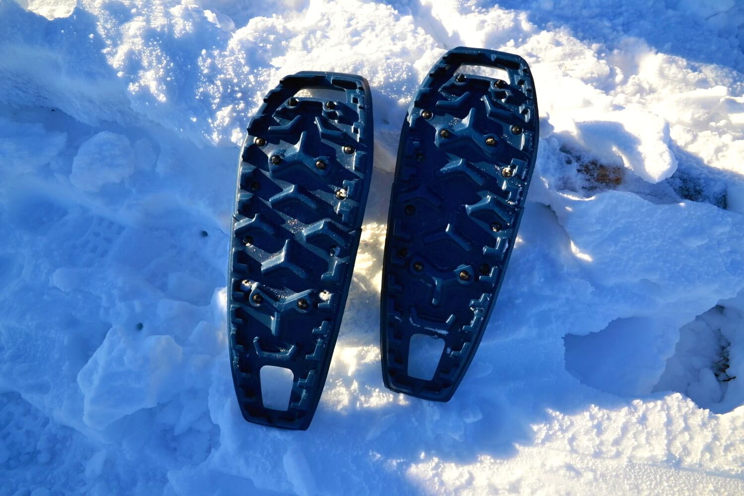 Spodní díl sněžnic Decathlon SH100 Easy má hrubší vzorek a tři páry hrotů
