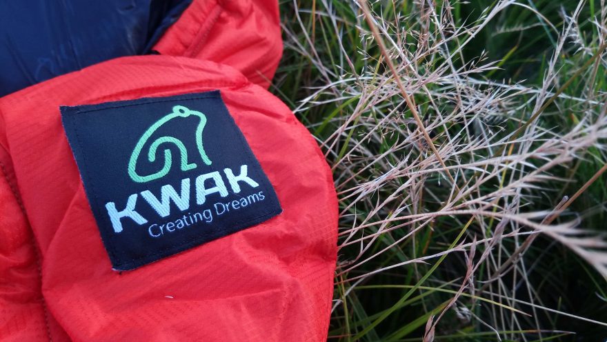 Na povrchu spacáku KWAK Kuňka K185 se při dešti tvoří kuličky vody