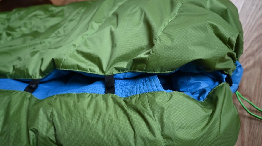 Detail zatažení spacáku KWAK TOPQUILT ANURA A185 v nohách