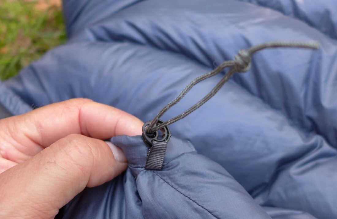 Detail samosvorky na stahování kapuce spacáku SCALE 200