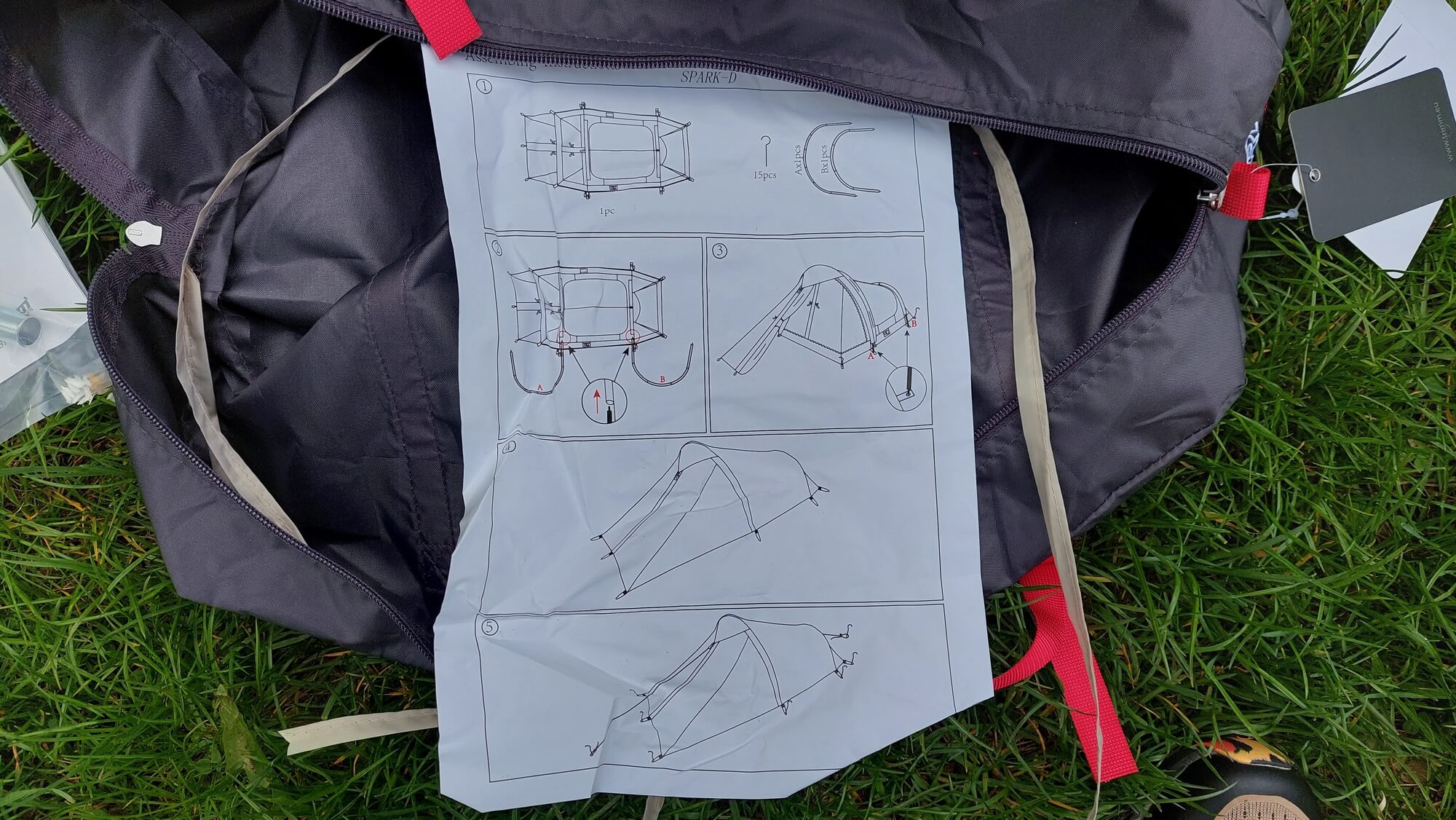 Návod k postavení stanu TRIMM SPARK D je součástí tašky