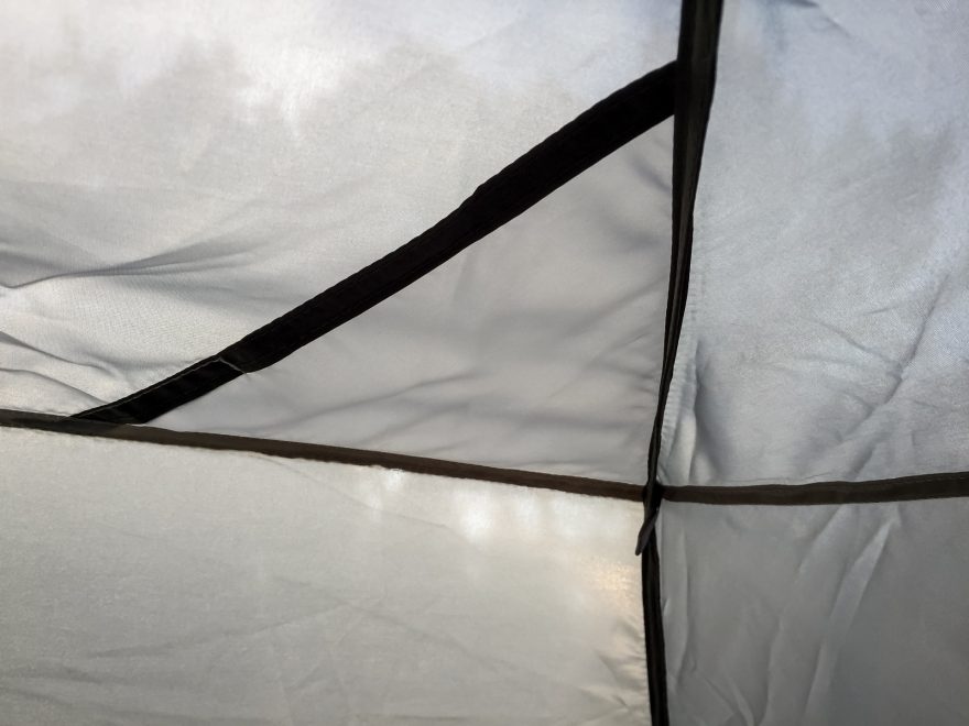 Háček uprostřed vnitřnho stanu pro zavěšení drobností.