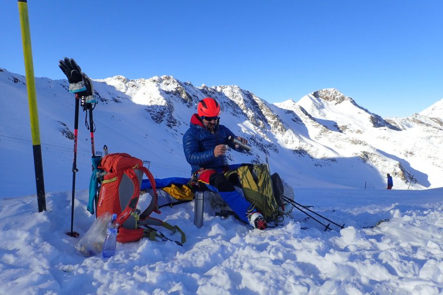 Příprava na sjezd po výstupu na vrchol s bundou PINGUIN Glimmer Hoody.