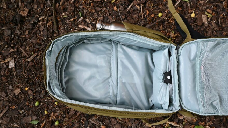 Uložení bot do do transparentní kapsy a balení je možno do hlavní komory provádět i takto naplocho
