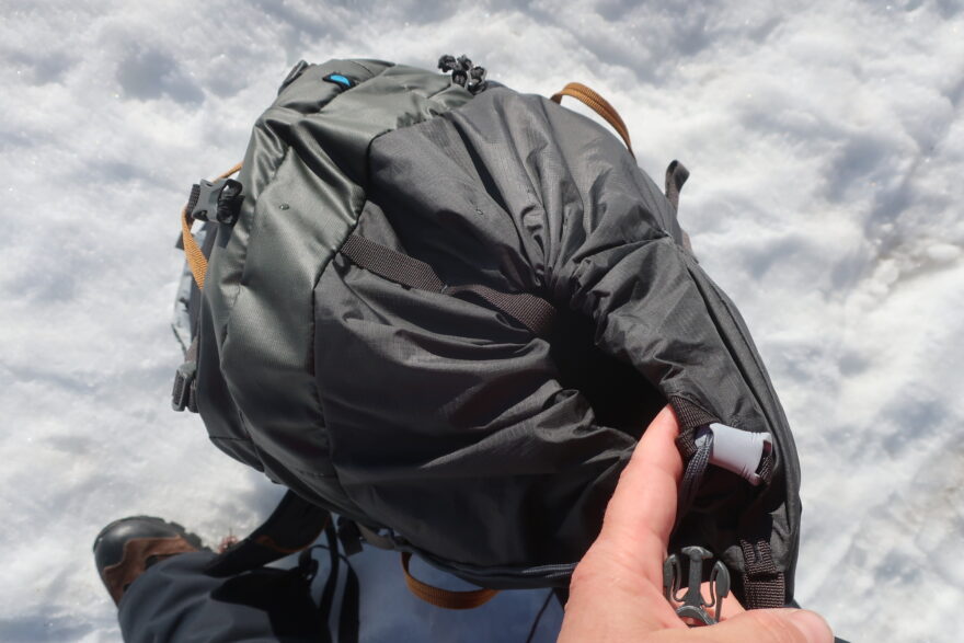 Uchycení lyží po stranách batohu Thule Stir Alpine pomocí bočních popruhů