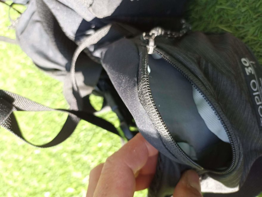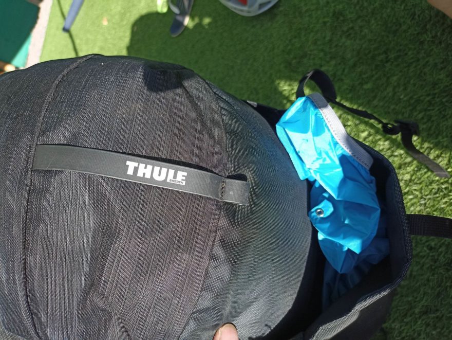 Detail kapsy na pláštěnku batohu THULE TOPIO 30