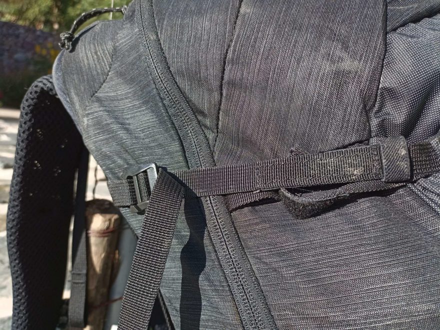Detail polstrování a balančního popruhu na batohu THULE TOPIO 30