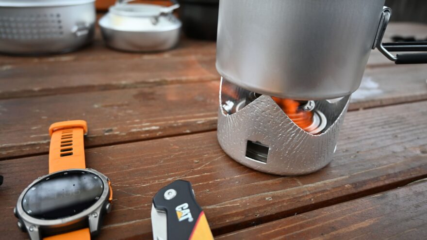 Detail fixace plynového vařiče v sadě TRANGIA 27-7 UL-HA