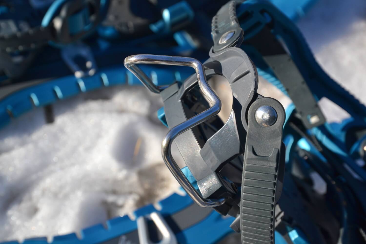 Při prudších stoupáních přišla na řadu podpatěnka, která je uchycena přímo na patě vázání a snadno se stlačí pod patu pomocí holí. Sněžnice TSL Symbioz Hyperflex Access