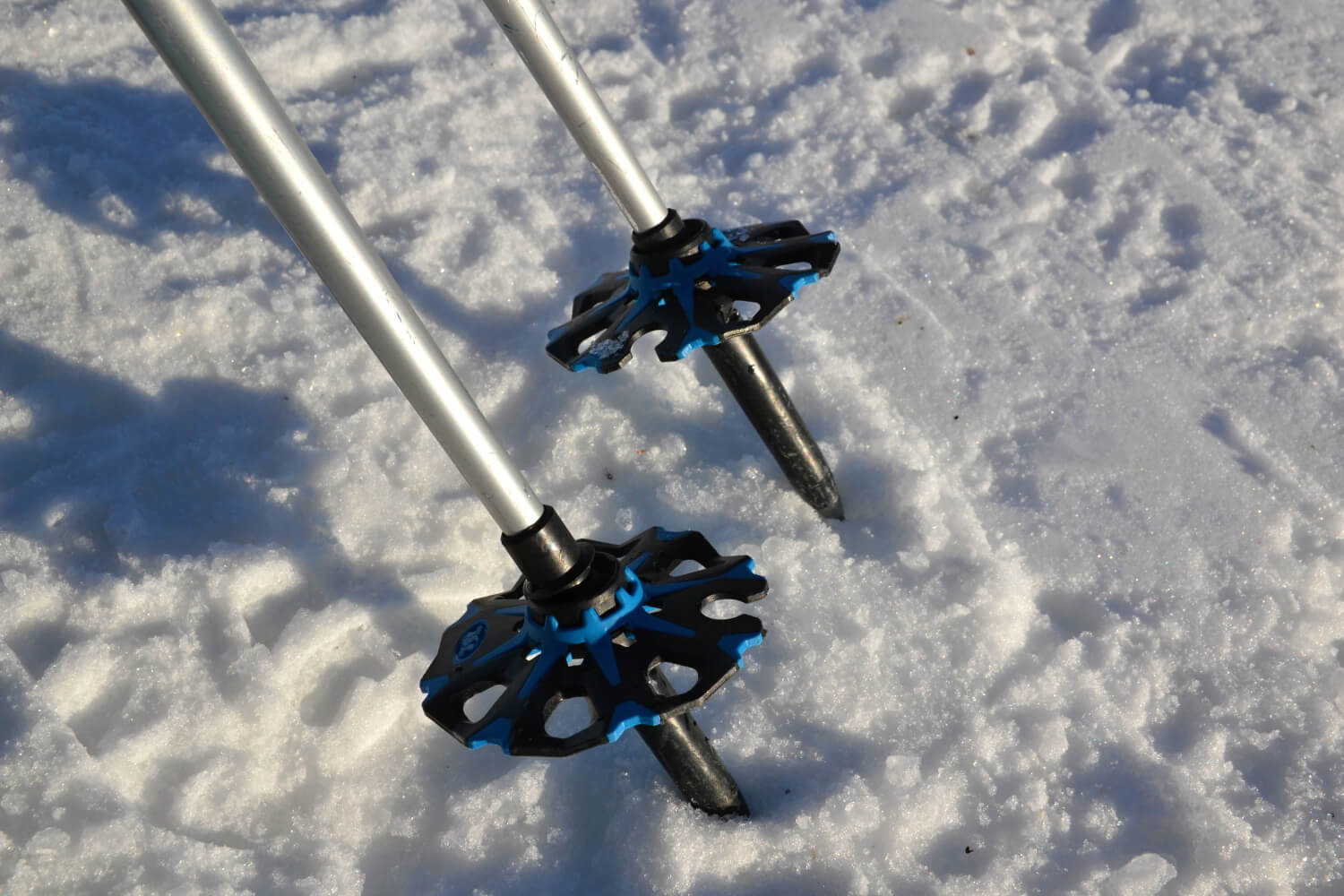 Dvoudílné teleskopické hole TSL Tour Carbon/Alu 2 Cross mají naklápěcí talířky, které se přizpůsobí sklonu terénu.