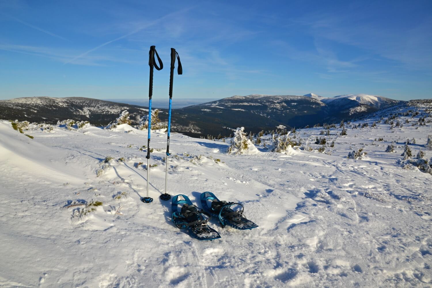 Zimní set sněžnic Symbioz Hyperflex Access a holí Tour Carbon/Alu 2 Cross značky TSL při testování v Krkonoších.