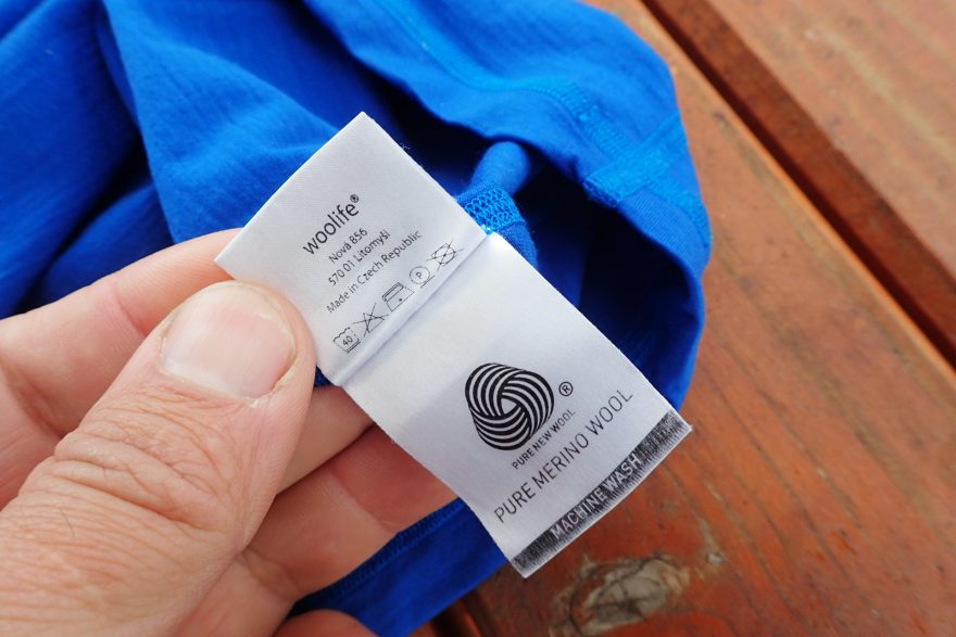 Vnitřní etiketa WOOLIFE včetně velikosti a složení.
