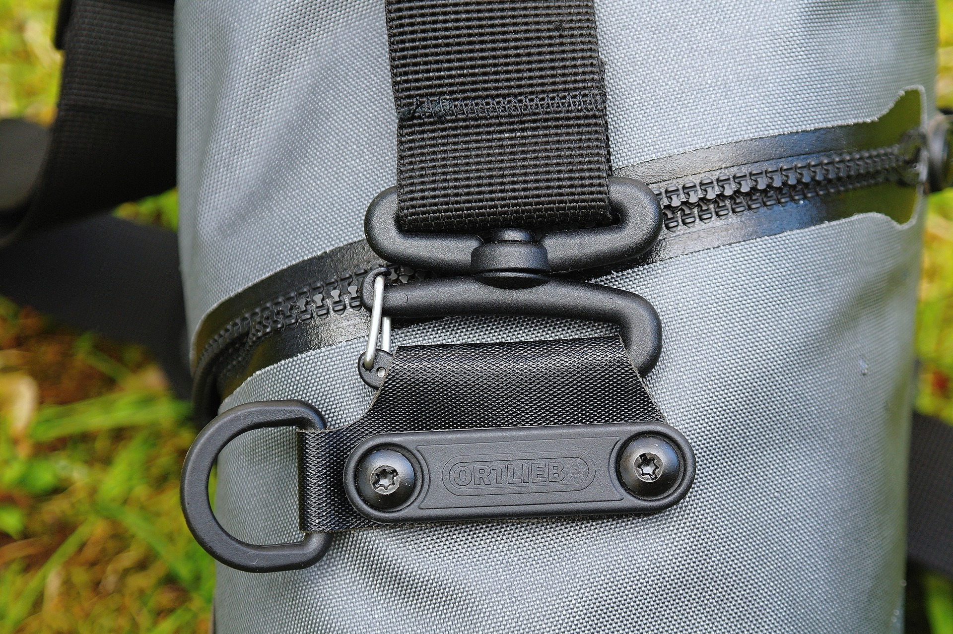Ortlieb V-Shot Ramenní popruh lze snadno odepnout.