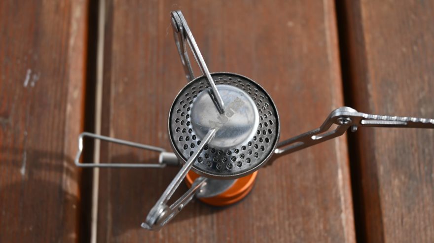 Detail plamene a hořáku vařiče YATE MOUNTAINEER