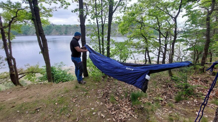 Doladění délky a vypnutí YATE NESTO pod hamakou pomocí samosvorek