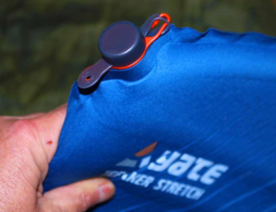 Stlačený vzduch se v karimatce YATE TREKKER STRETCH 3,8 udrží o když omylem vytáhneme šedou krytku.