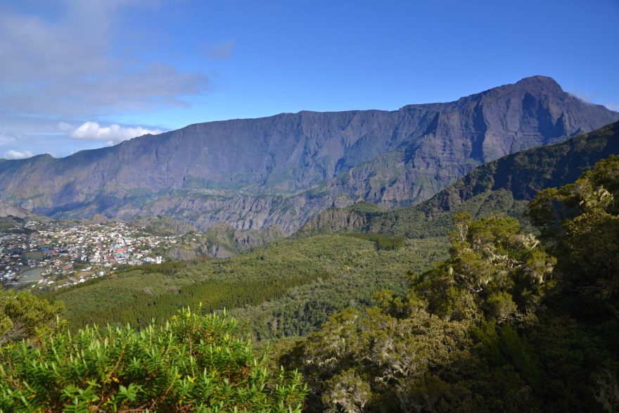 Výhled na Cilaos při cestě na chatu Caverne Dufour.