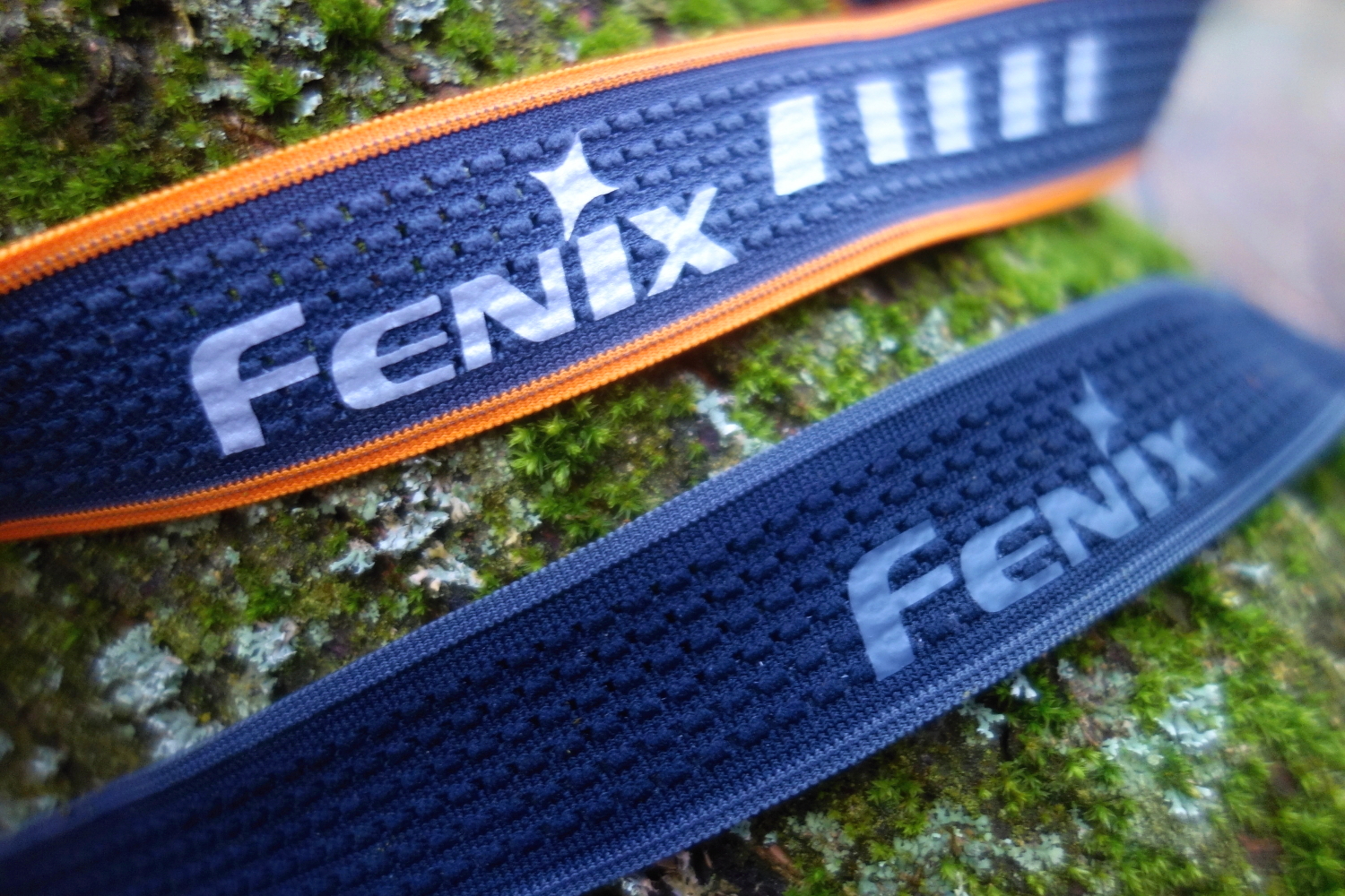 Porovnání variant pásku k svítilně Fenix HM61R Amber. Nahoře reflexní varianta, dole varianta bez reflexních prvků.