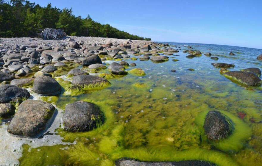 Pláže na jihovýchodním pobřeží Skåne, Švédsko.
