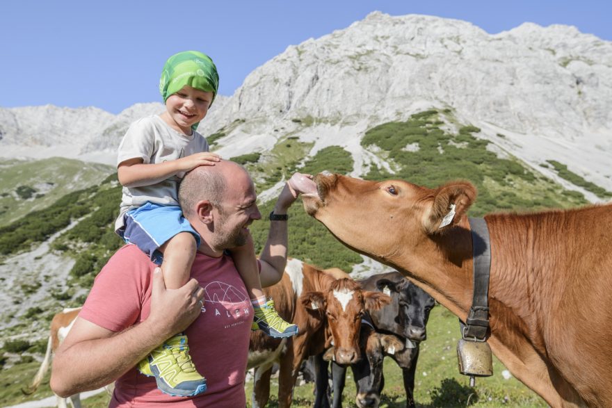 Chata Guttenberghaus v Dachsteinském masivu je vhodná i pro malé turisty.