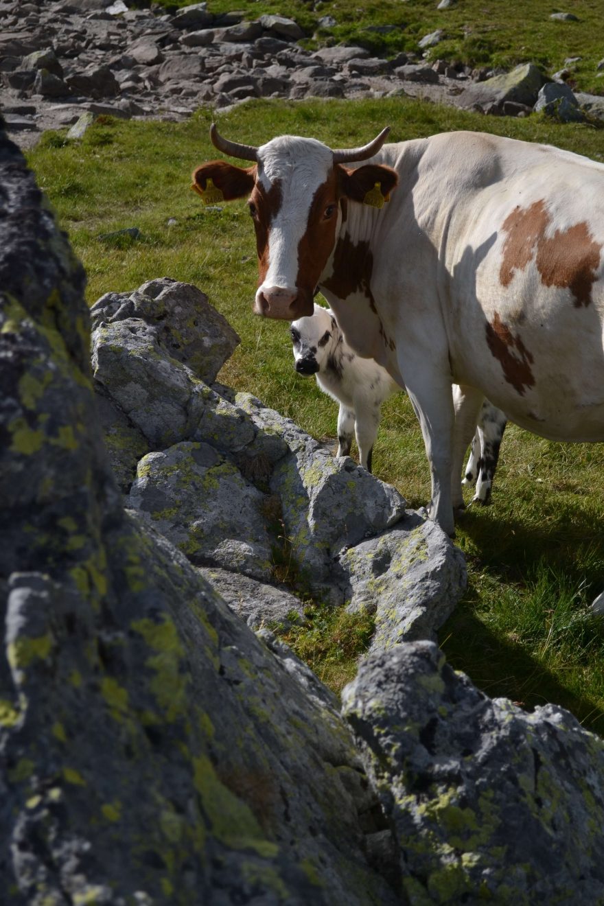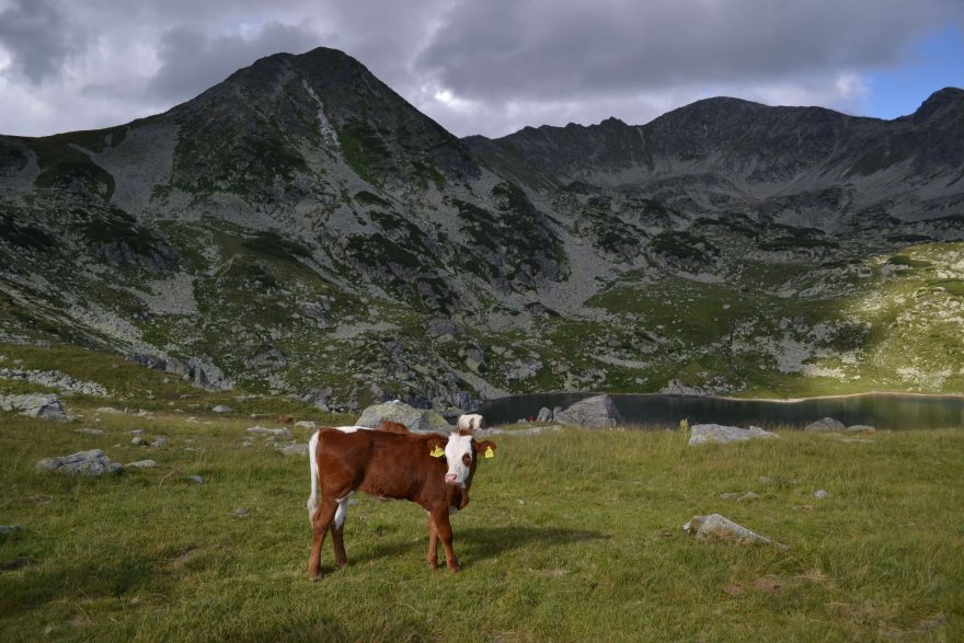 Na pastvinách pasou bačové skot, Retezat, Rumunsko