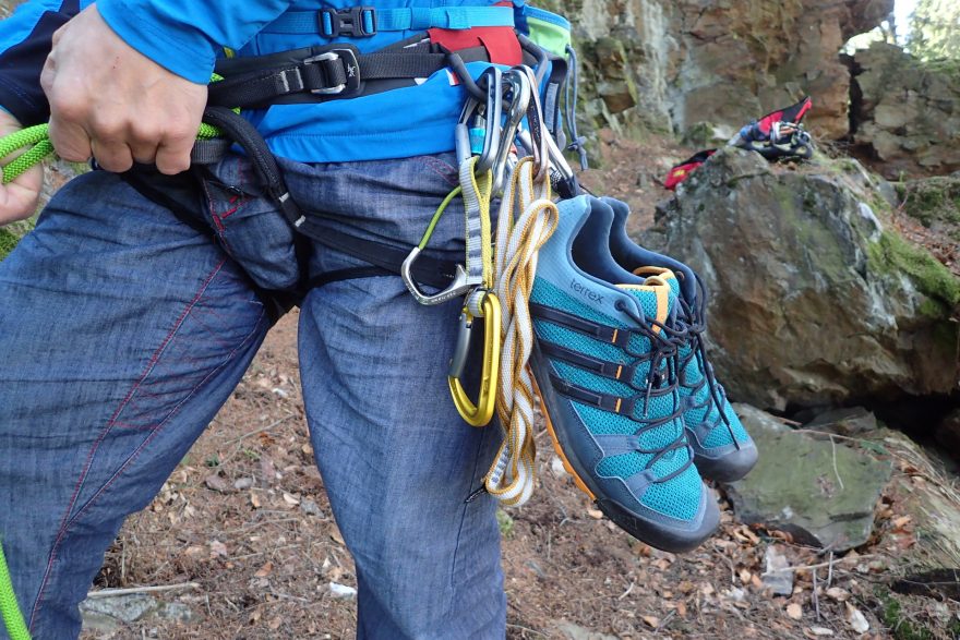 Boty se dají zavěsit v pohodě na sedák. A použít na sestup nebo na další výstup.